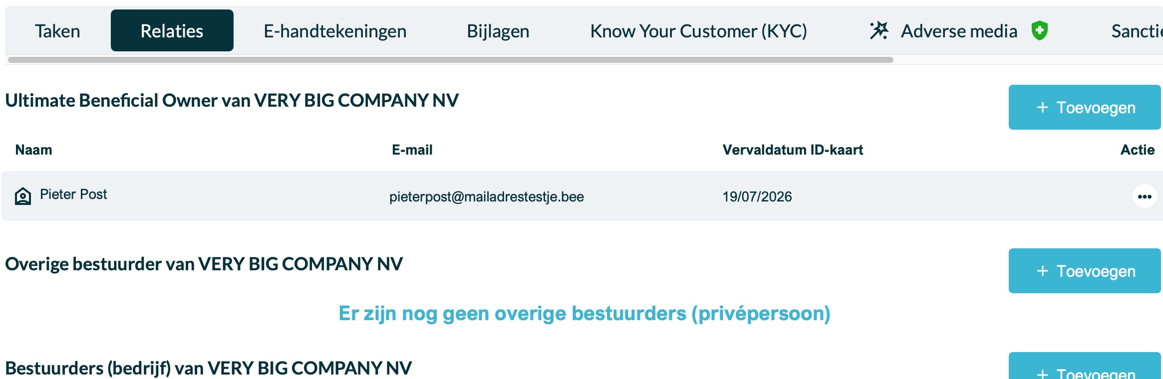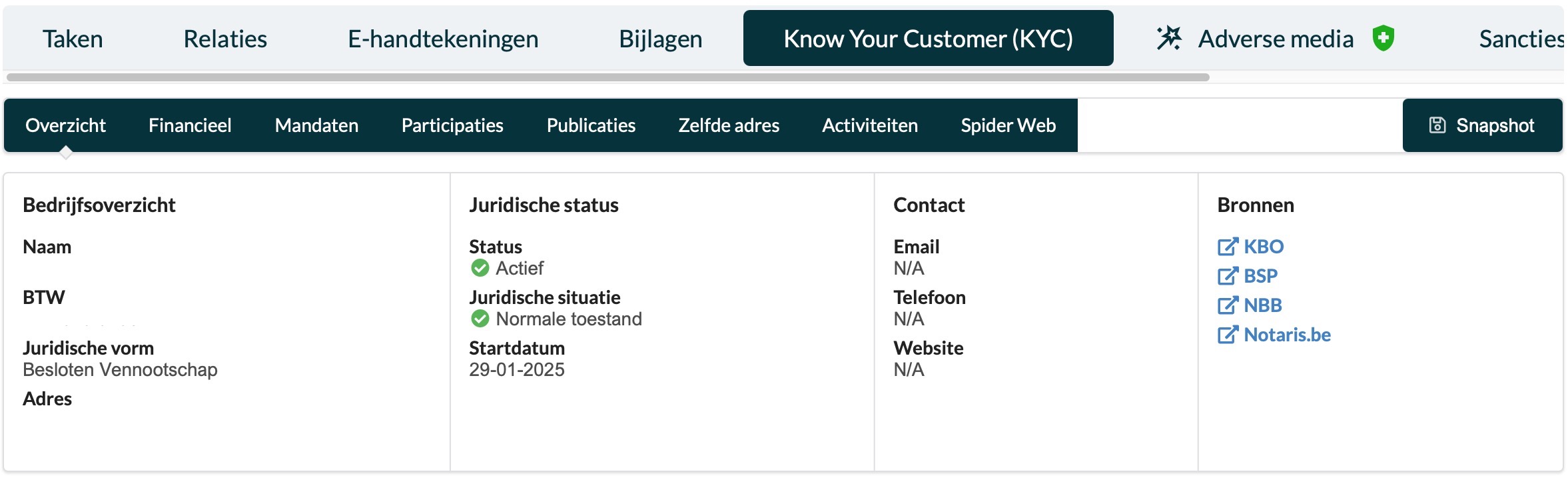 De KYC-sectie is bedoeld om centraal de basisinformatie van uw klant te bekijken.