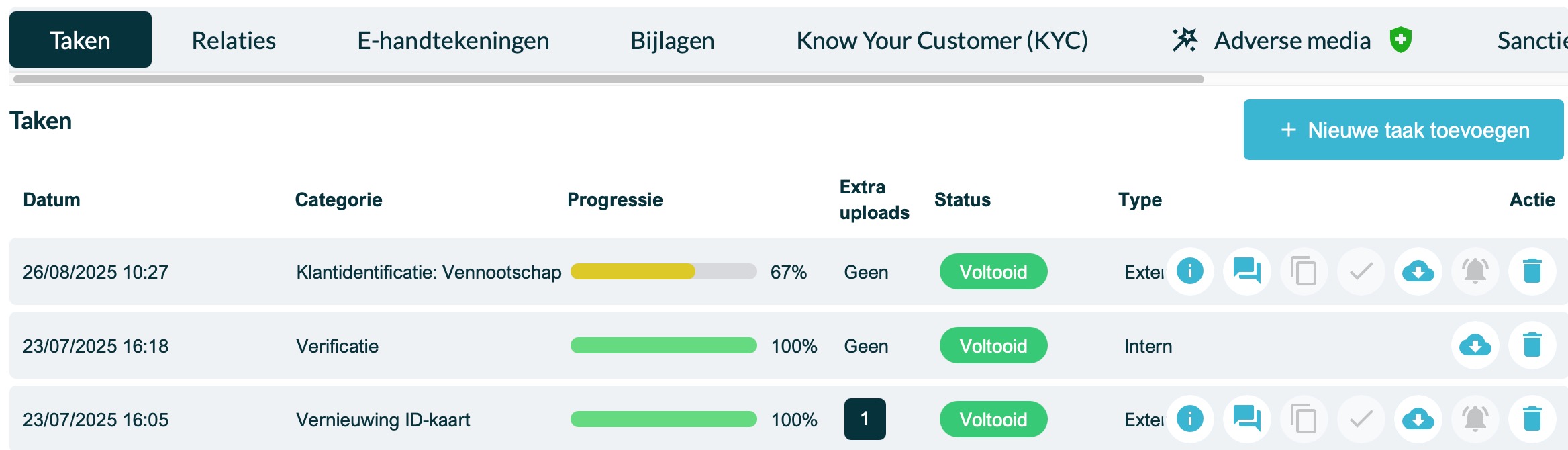 Ook kunt u nieuwe taken toevoegen en documenten downloaden voor de voltooide taken.