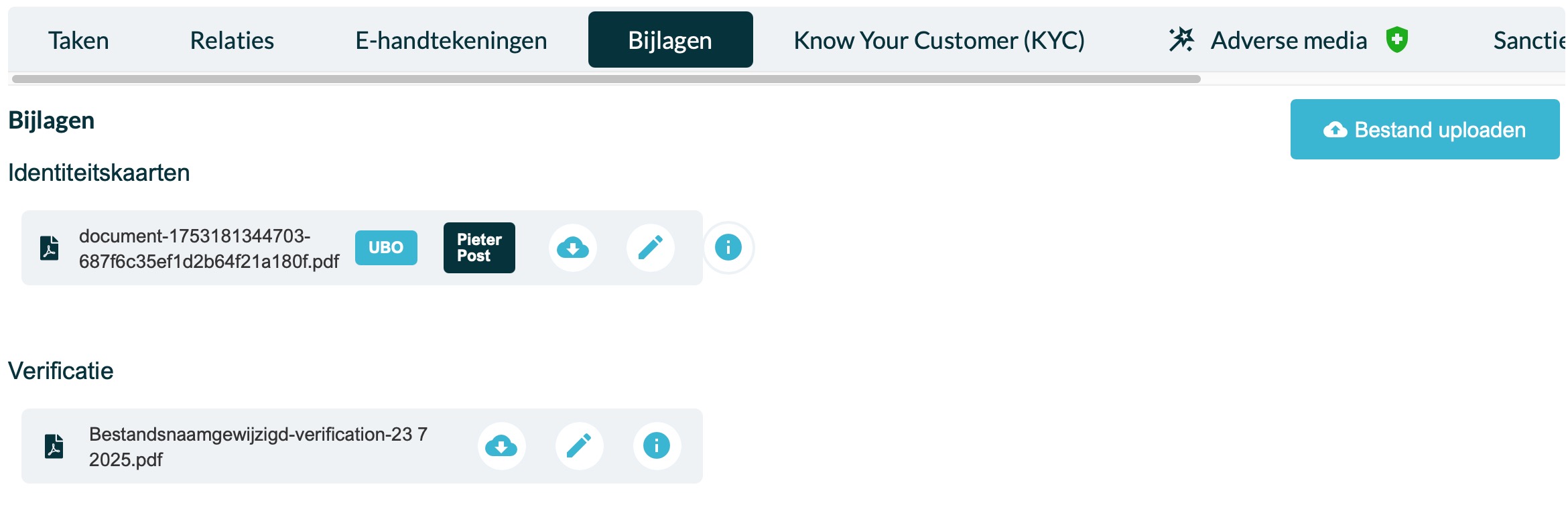 Hier vindt u extra bijlagen zoals opgeladen identiteitskaarten, verificatie documenten…