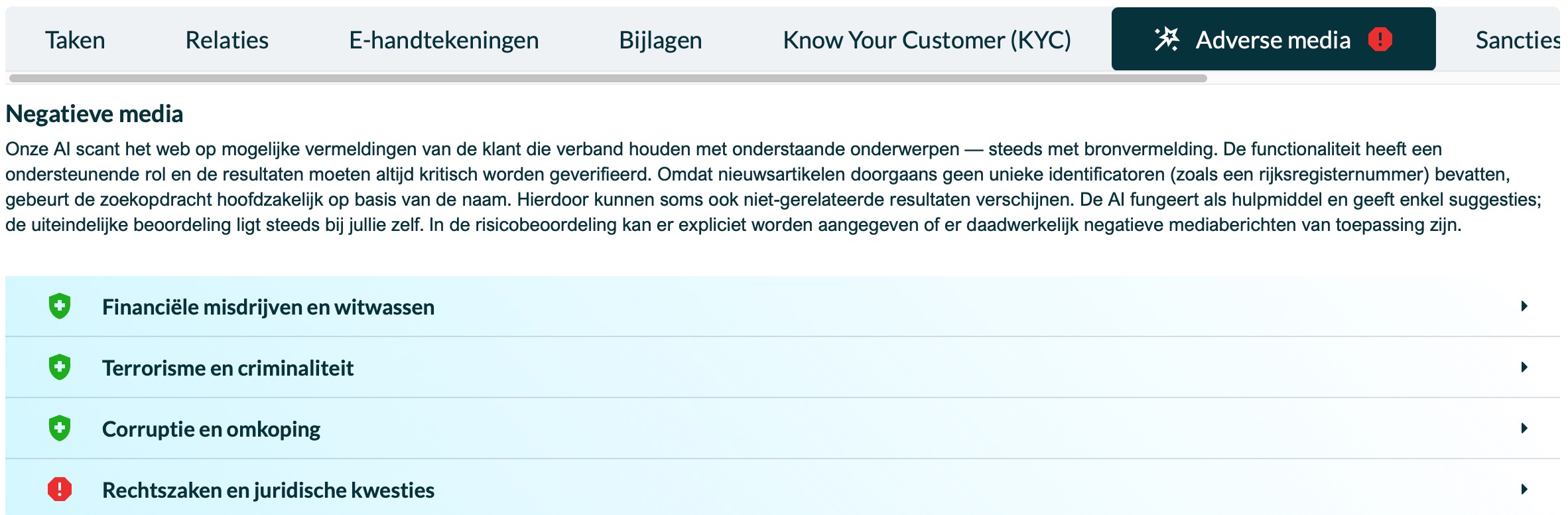 Hier ziet u of er negatieve berichtgeving is gevonden, en uit welke bronnen.