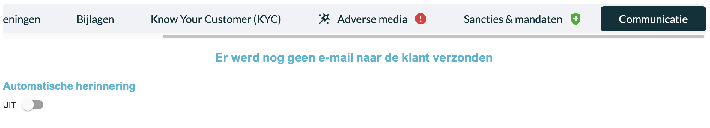 Hier kunt u alle communicatie met de klant overzien alsook automatische herinneringen instellen.