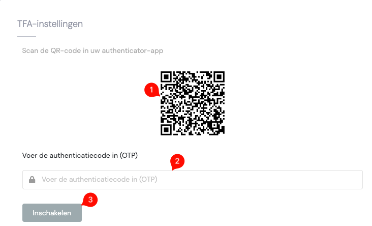 TFA-instellingenScan de QR-code met een authenticator-app. (1)