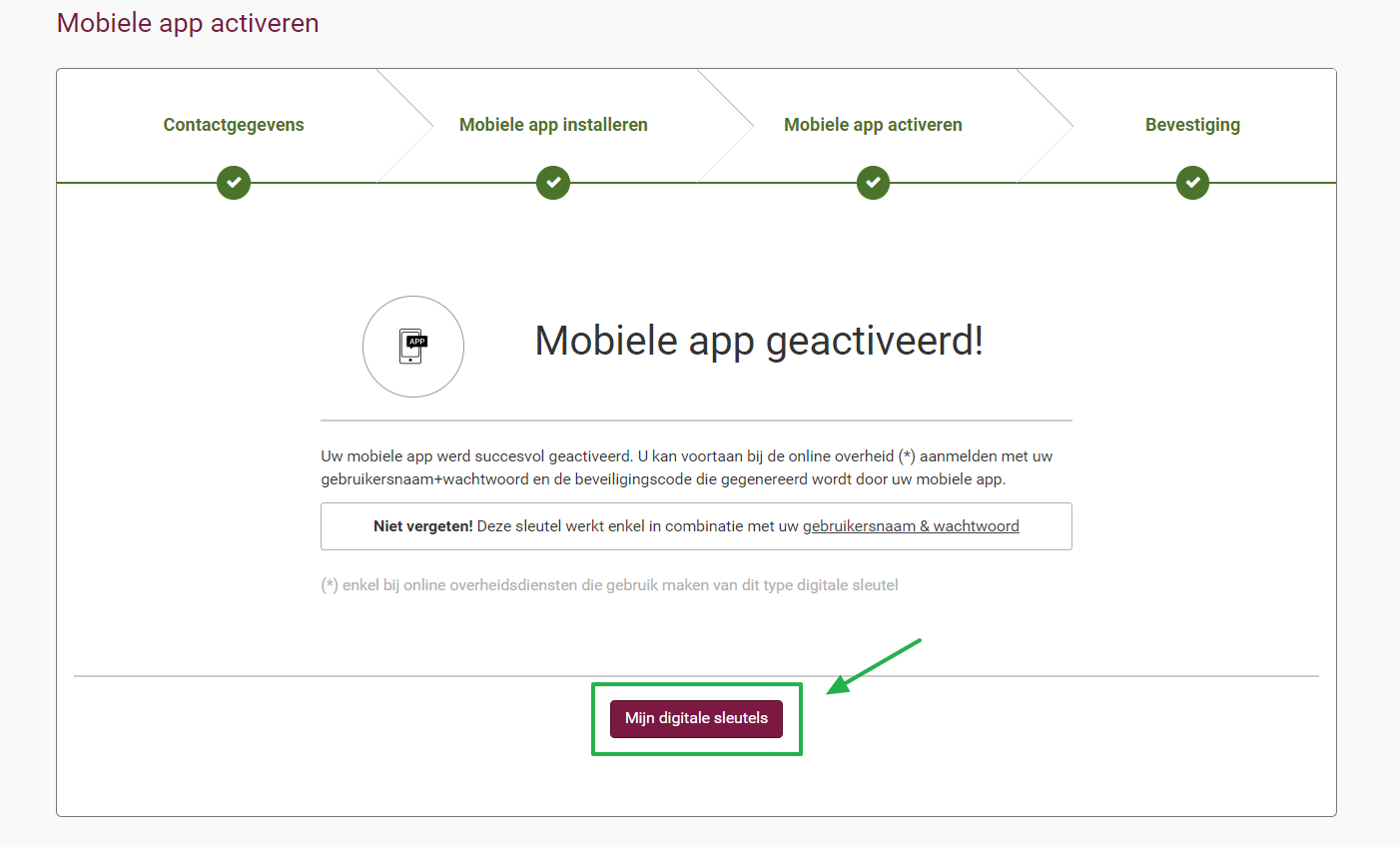 - De digitale sleutel werd succesvol gegenereerd en geactiveerd.