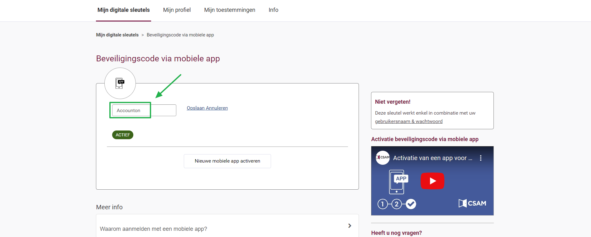 - Klik vervolgens op “Nieuwe mobiele app activeren”